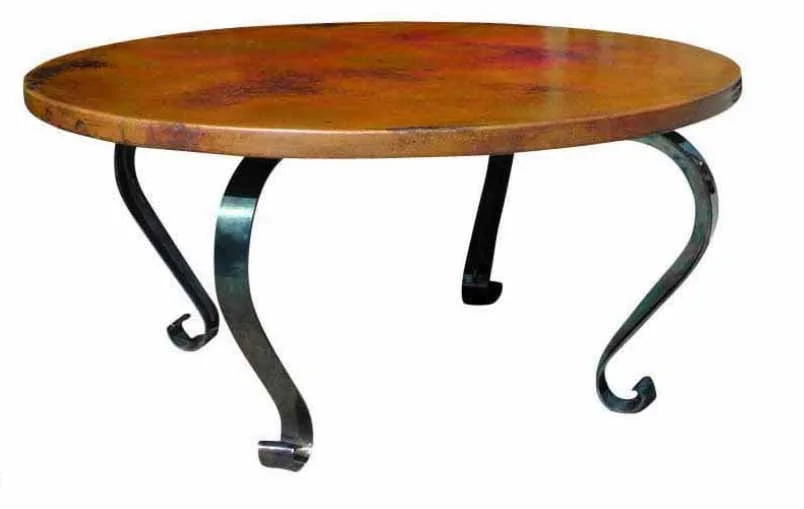 Hammered, Round Copper Table Top, Hand-forged Iron Lorena Table-Base 1-10