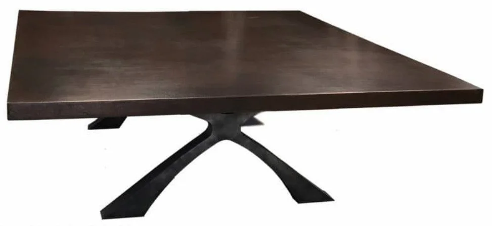 Square Copper Top Dining Table Mounted on Soft Industrial Chic Flat Iron Table Base